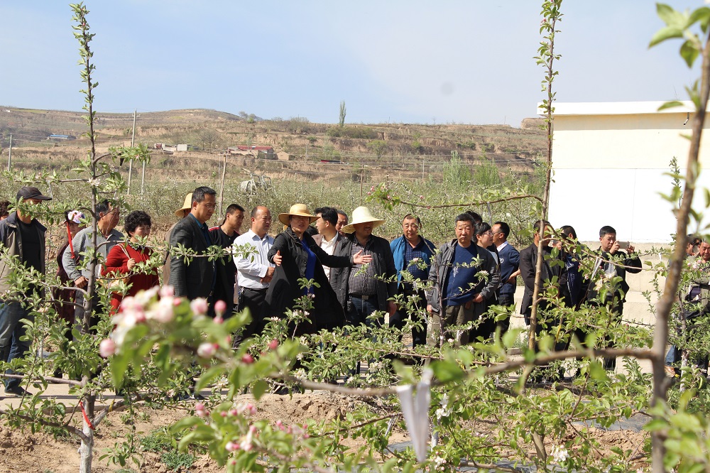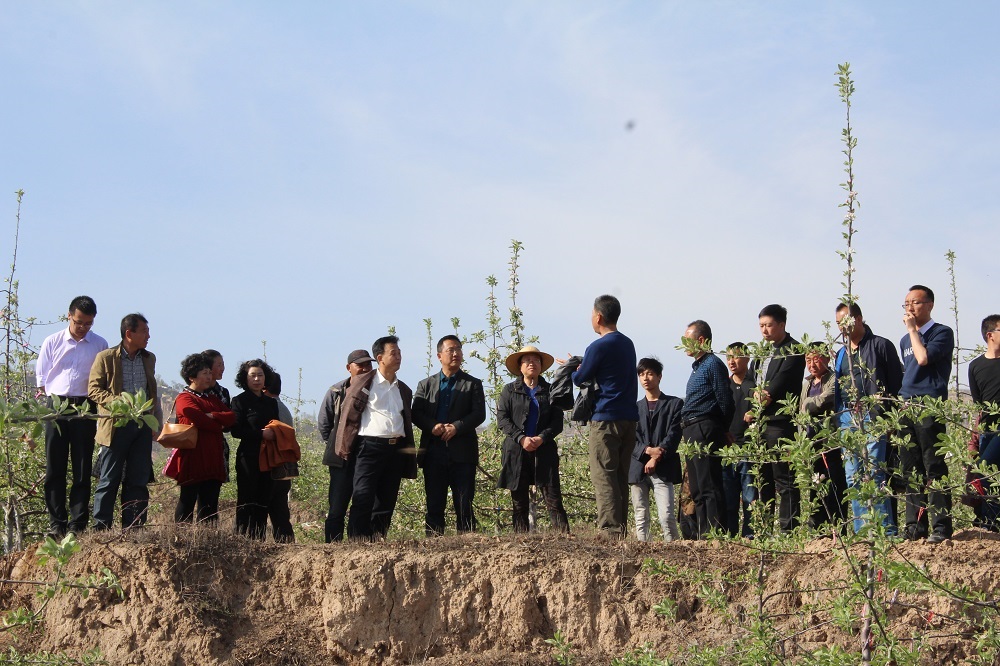 4月18日下午,天水市果树研究所组织技术人员赴天水昊源农艺有限公司麦积区石佛镇杨庄村北山果园考察交流。张莲英所长、李中祥副所长及60余名技术人员在北山果园实地进行了考察交流。