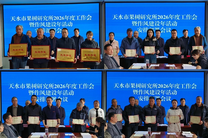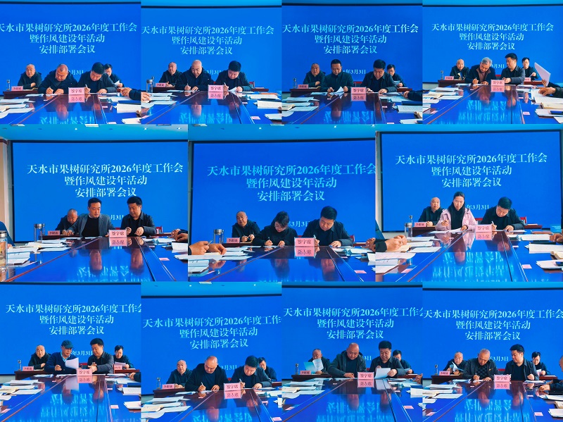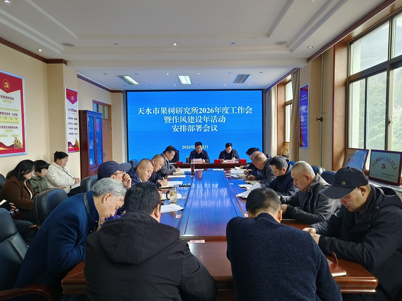 2026年3月3日,天水市果树研究所召开2026年度工作会暨作风建设年活动安排部署会议。所班子成员、副总园艺师、创新团队首席、创新中心主任、受表彰的2025年度先进工作者和部分职工代表50余人参加会议。